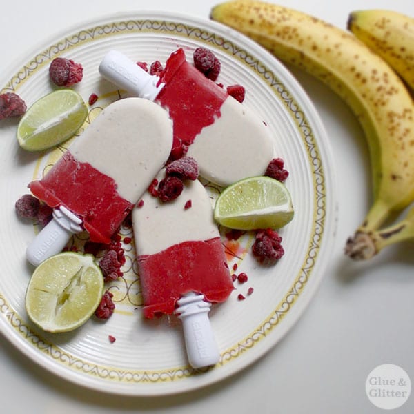 Layered Raspberry and Banana Pops